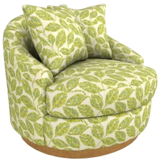 The Alanna Swivel Barrel Chair is an all-around invitation to snuggle up and relax. Included are two pillows in the same cover as the body, and the wide, deep seat is nearly enough room for two. The low profile base discreetly hides the graceful 360-degree swivel action.Read More