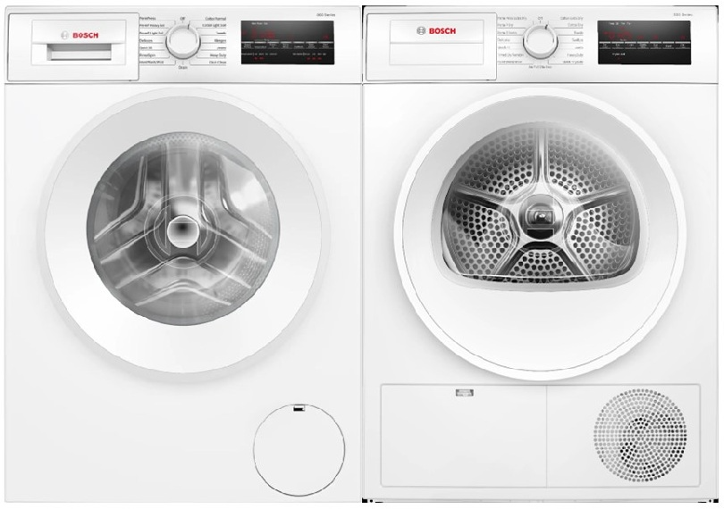 Bosch® 300 Series White Compact Laundry Pair with a White Compact Front Load Washer and 4.0 Cu. Ft. White Ventless Compact Condensation Electric Dryer.Read More