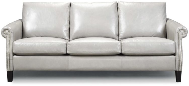 Rolled arms, nailhead trim, and loose-back seating give this sofa a stunning style. Eco-friendly construction. Certified sustainable, kiln-dried wood frame. Feather wrapped MicroGel soy-based polyfoam. Web and coil spring system. Benchmade in Canada. Available in fabric or leather.
