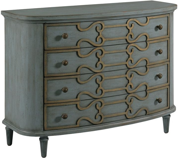 Our Hidden Treasures Collection is a fabulous assortment of pieces inspired from furniture designs from around the world. Each is a true treasure and crafted with attention to detail. Adorned in a gray finish with gold ribbon accents this piece is an eyecatching staple to any room.Read More