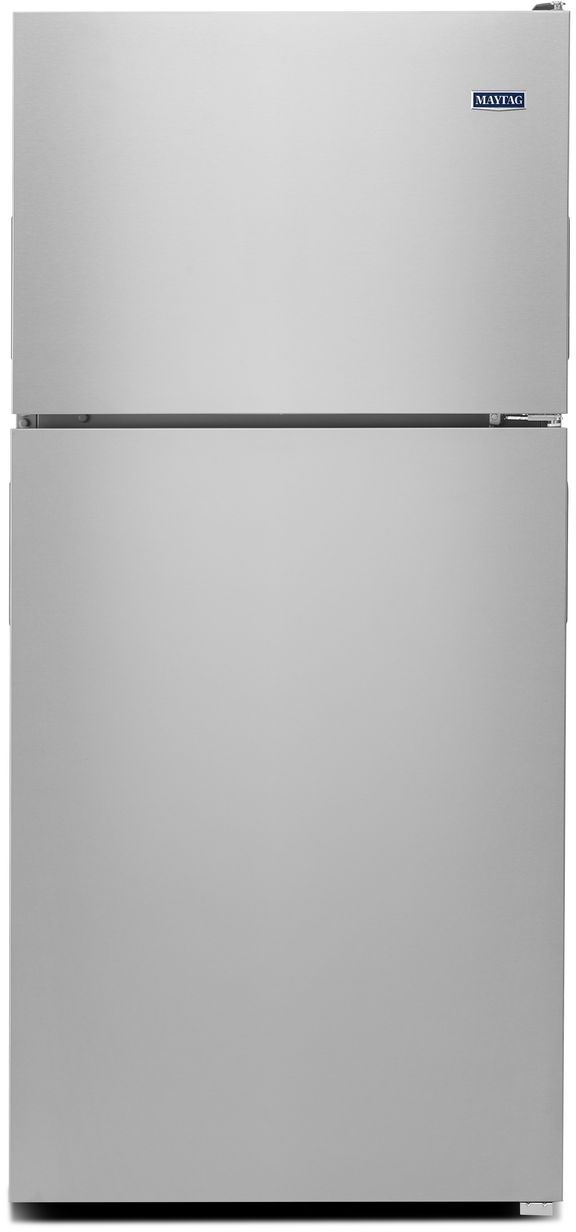 Maytag® top-freezer refrigerators are built to hold the cold with features like the PowerCold® feature that chills down the refrigerator to help keep everything cool with the touch of a button—even if the whole family's been browsing with the door open. Plus, fingerprint resistant stainless stainless steel keeps this fridges looking great. Inside this 21 cu. ft. model you'll also find the BrightSeries™ LED lighting. It casts a bright, white light and uses less energy than incandescent bulbs.Read More