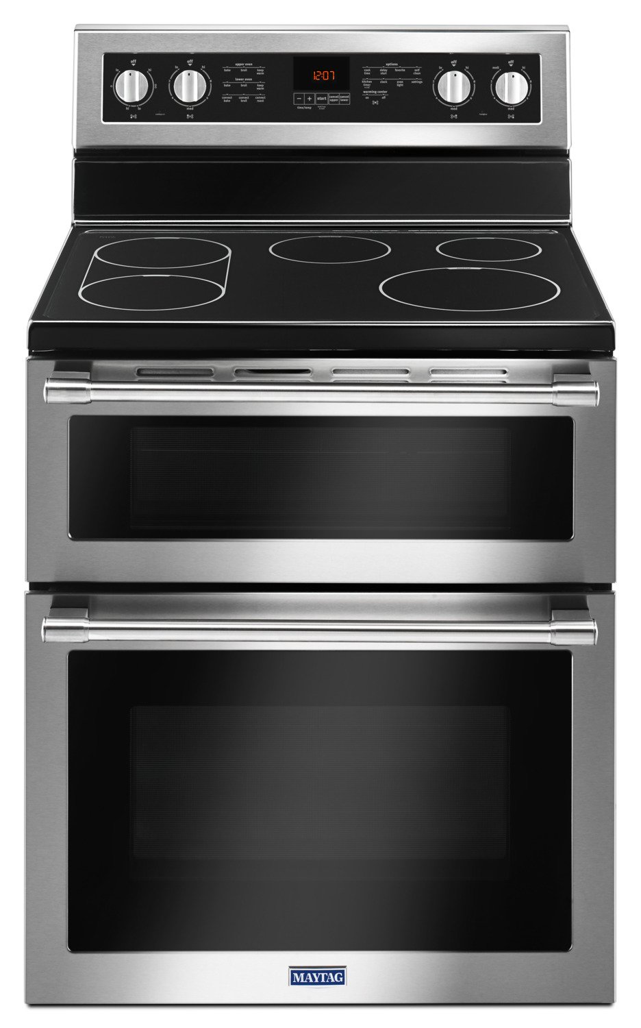 No matter how big the meal, count on this 6.7 total cu. ft. double oven electric stove to get the job done. Power Preheat helps you start cooking sooner, while true convection with a third heating element makes sure that temperatures stay consistent to bake and roast faster. Plus, the Power™ element brings the heat for quick searing and an even sauté, and the bridge element provides more cooking capabilities with larger pans. Even better, this freestanding oven boasts a 10-year limited parts warranty, is available in fingerprint resistant stainless steel, and is designed, engineered and assembled in the U.S.A.Read More