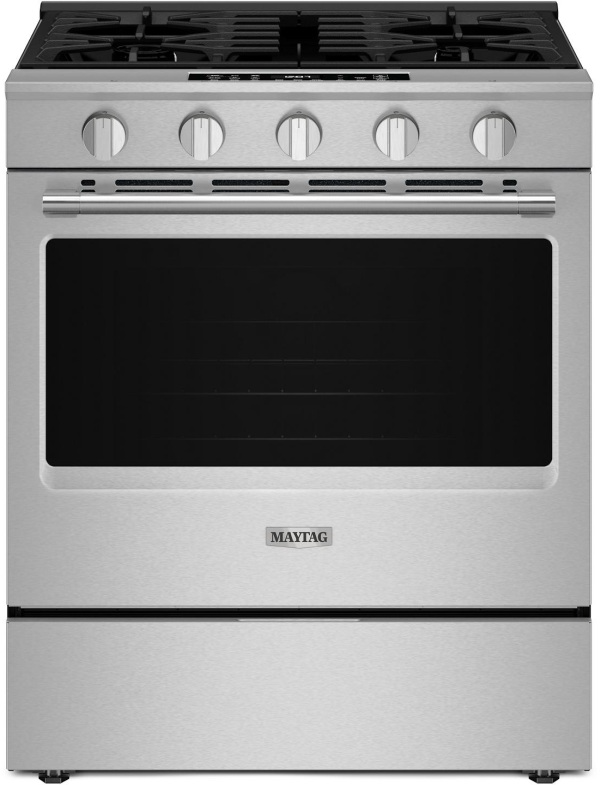 The dishwasher-safe cast-iron grates and sturdy door hinges on this Maytag® gas range are built for dependability, while the fingerprint resistant stainless finish helps make cleaning easy.