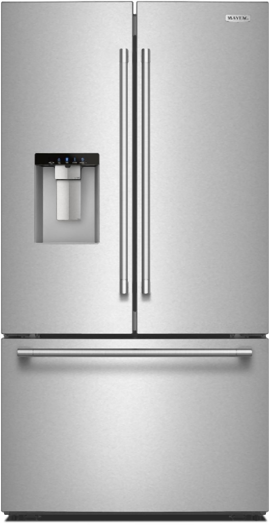 Maximize cold food storage with the Maytag® 29.6 Cu. Ft. XL Capacity French Door Bottom Mount Refrigerator with In-Door-Ice® Dispensing System. Built for bulk grocery runs, it features the XL Crisper—our largest capacity drawer on the market—which features a full-width design for oversized items. The EvenAir™ Cooling System uses a power venting system to circulate cold air consistently, while the PowerCold® Feature quickly cools down the refrigerator.Read More