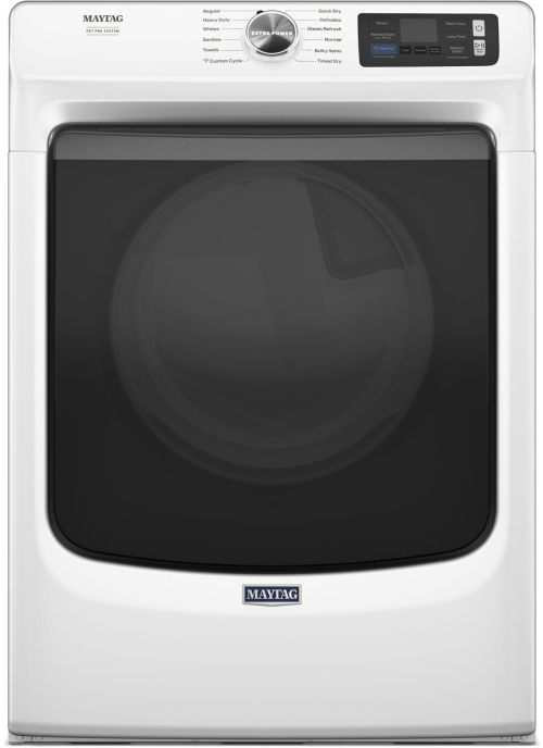 The Maytag® Pet Pro dryer traps and removes loads of pet hair from clothes. The Pet Pro option lifts and captures pet hair from clothes on select cycles and traps it in the lint trap. Extra Power boosts drying power to get thick fabrics drier the first time, while Advanced Moisture Sensing helps evenly dry loads.Read More